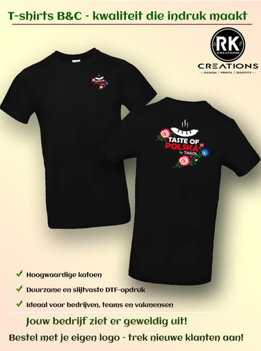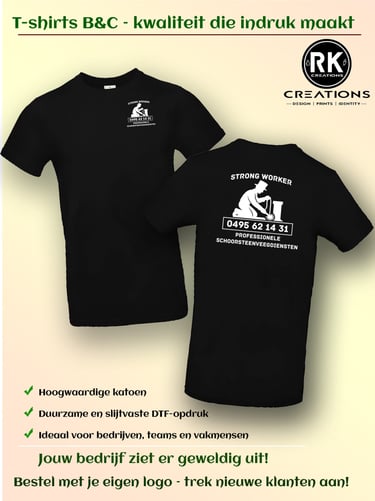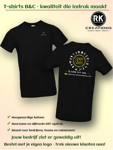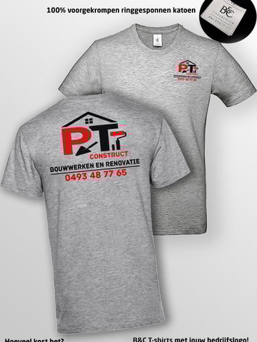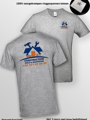 Laat jouw bedrijf opvallen met professionele bedrukking op T-shirts, hoodies, jassen, mutsen en promotionele gadgets.