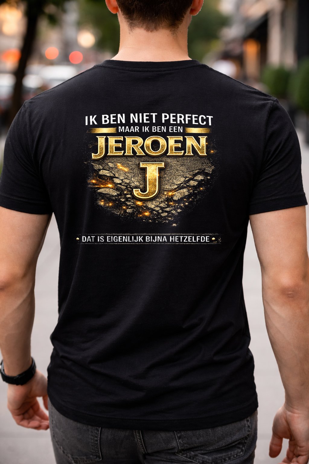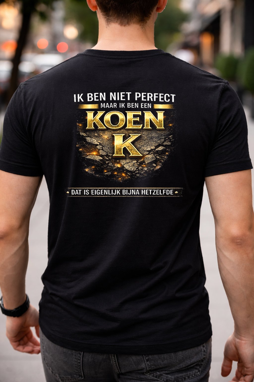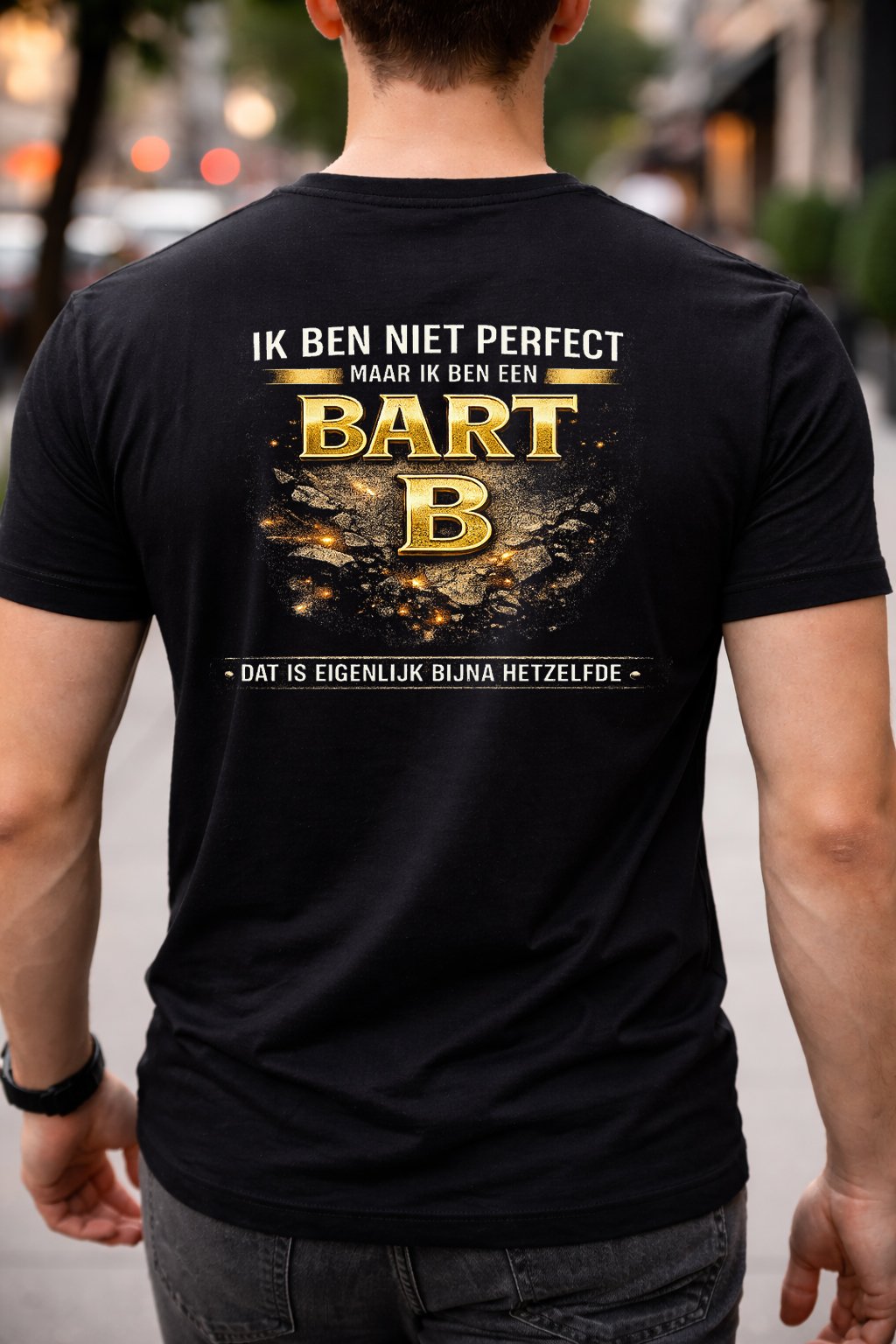 B&C T-shirt gemaakt van 100% hoogwaardig katoen (190 g/m²). De opdruk van ca. 27 × 27 cm is uitgevoerd met duurzame DTF-technologie, bestand tegen wassen en slijtage.